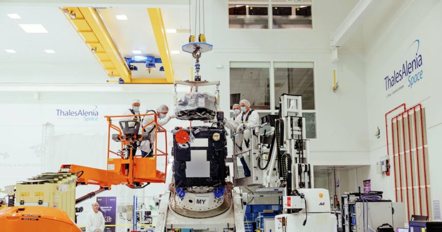 Arrivé chez Thales Alenia Space à Cannes (Alpes-Maritimes) à l’été, le satellite Flex va rester sur le banc d’essai jusqu’au printemps 2026. Il doit ensuite passer trois ans et demi à capturer des images inédites de la fluorescence des plantes et des forêts.