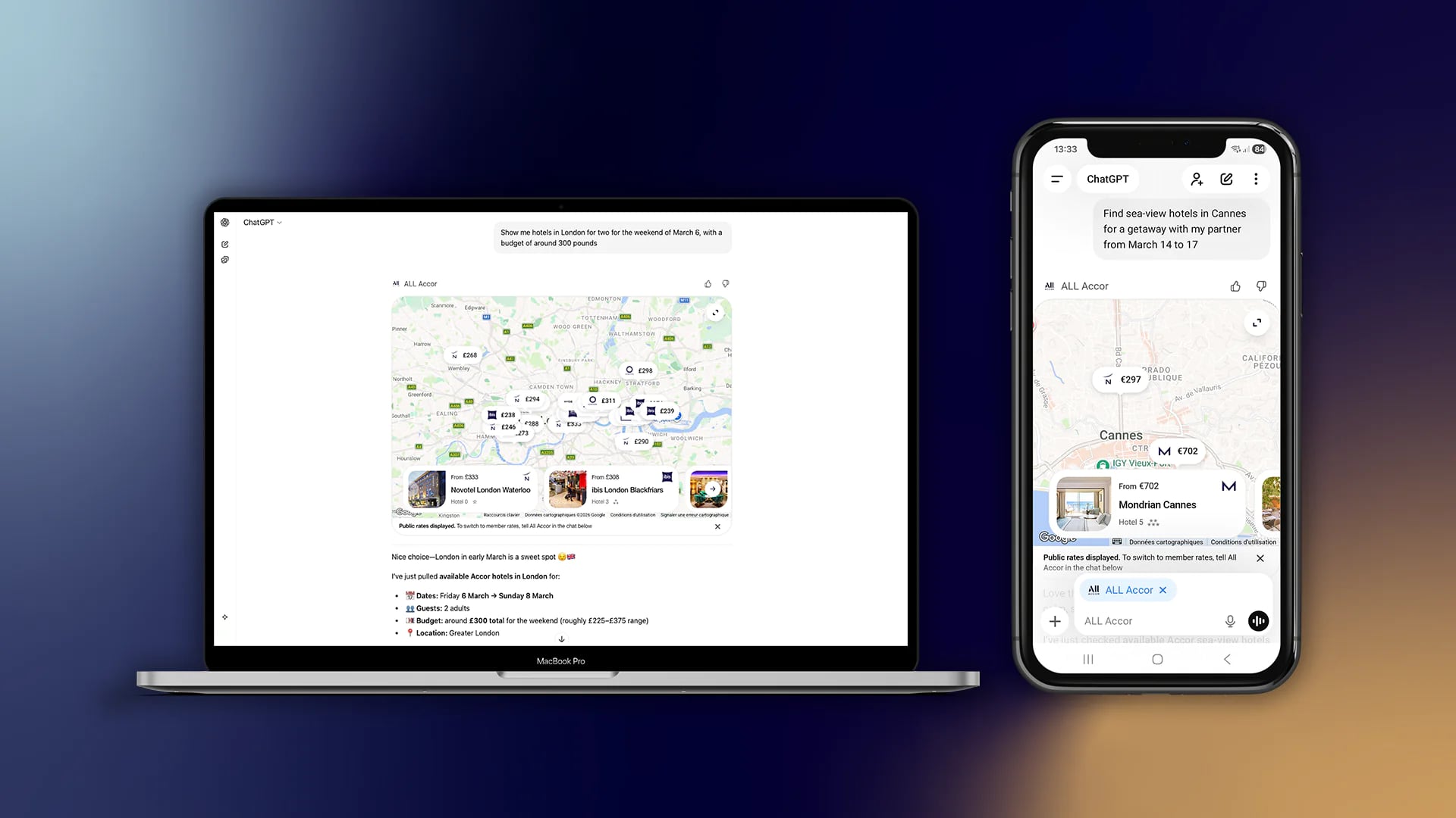 Les utilisateurs sont ensuite redirigés vers le site sécurisé ALL Accor pour finaliser leur réservation. Cette application, développée spécifiquement pour le service d’OpenAI, est d’ores et déjà accessible dans une vingtaine de langues et dans tous les pays où les applications ChatGPT sont disponibles.