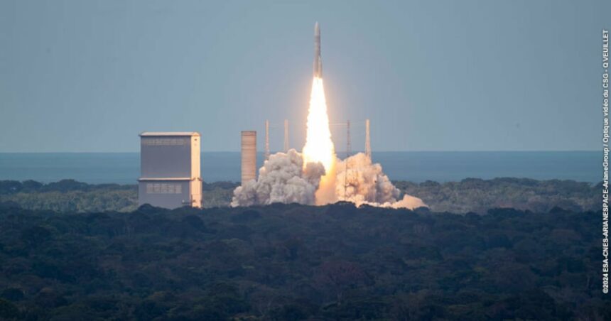 Ariane 6 doit s’élancer vers l’espace aujourd’hui à 17h45 (heure de Paris). A son bord : 32 satellites de la constellation Amazon LEO (anciennement Kuiper), qui seront placés à 630 kilomètres d’altitude. Suivez le décollage en direct :